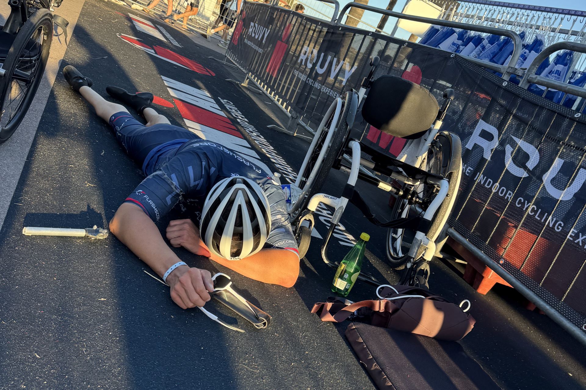 Zdroj: honzatomanek.com Tato fotka mluví za vše a více slov k mé účasti na IRONMAN World Championship Nice snad ani není potřeba! Kvalifikoval jsem se jako jediný sportovec na vozíku a hrdě se postavil na start jednoho z nejtěžších závodů světa. A navíc jako úřadující světový šampion z Havaje! Ale trat v Nice je extrémní a připomenu cyklistické převýšení 2500 metrů a dominantní 20 km dlouhé stoupání na Col de l’Ecre. Po nesplnění časového limitu v cyklistice jsem byl diskvalifikován a nemohl jsem pokračovat, byť jsem chtěl závod “pouze” formálně absolvovat, bez nároku na titul, nebo kvalifikaci na další světový šampionát.